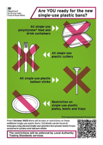 From 1 October 2023 there will be additional bans and restrictions on single-use plastic items.