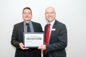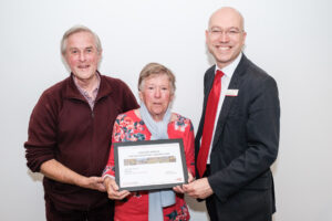 Above: Peter and Carol Lotarius receiving their award from Greater Anglia’s Head of Corporate Affairs, Jonathan Denby (right). Credit: Greater Anglia