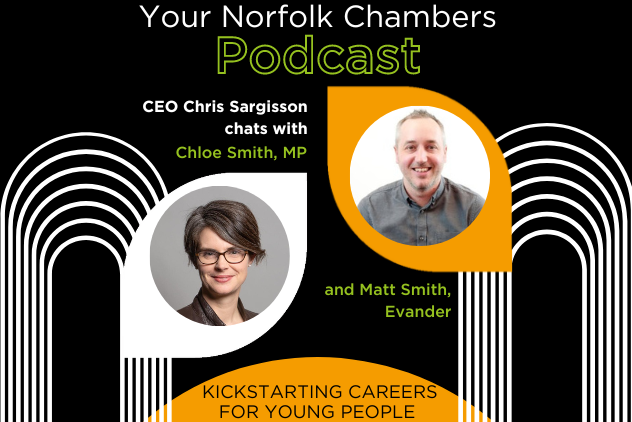 Welcome to the Norfolk Chambers podcast – in this episode our CEO Chris Sargisson is talking with Chloe Smith, Member of Parliament and leader of the Norwich for Jobs Programme and also Matt Smith, Human Resources Director at Evander. This podcast was recorded at the Evander Head Office on Broadland Business Park in Norwich.