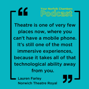 Welcome to the Norfolk Chambers podcast, in today’s episode Haze Carver is chatting with Lauren Farley, Business Development & Events Coordinator at Norwich Theatre Royal.